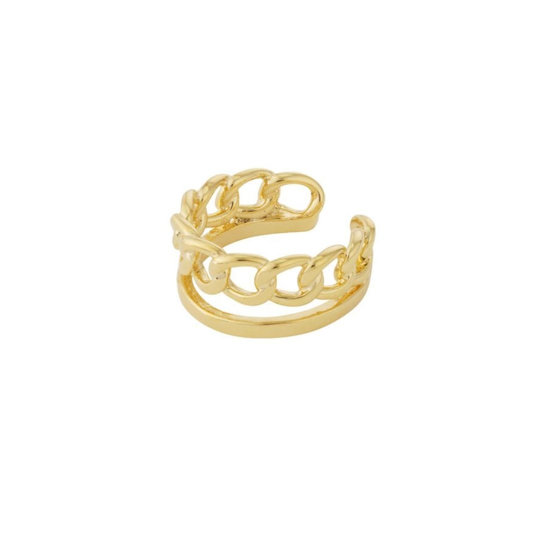 Hoe stoer is deze gouden ear cuff. Deze stoere oorbel is uitstekend casual te dragen, maar kan ook super leuk met meerdere oorbellen tot een feestelijke look gecombineerd worden.