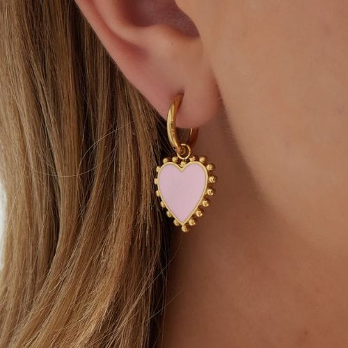 Hoe schattig is dit gouden paar oorbellen met fuchsia kleurig hartje, afgewerkt met gouden bolletjes. Deze sierlijke oorbellen zijn uitstekend tijdens een feestje te dragen en kunnen ook superleuk gecombineerd worden met meerdere gouden oorbellen. Daarnaast zijn deze oorbellen ook superleuk te combineren met kleurrijke accessoires voor een tof feestje!