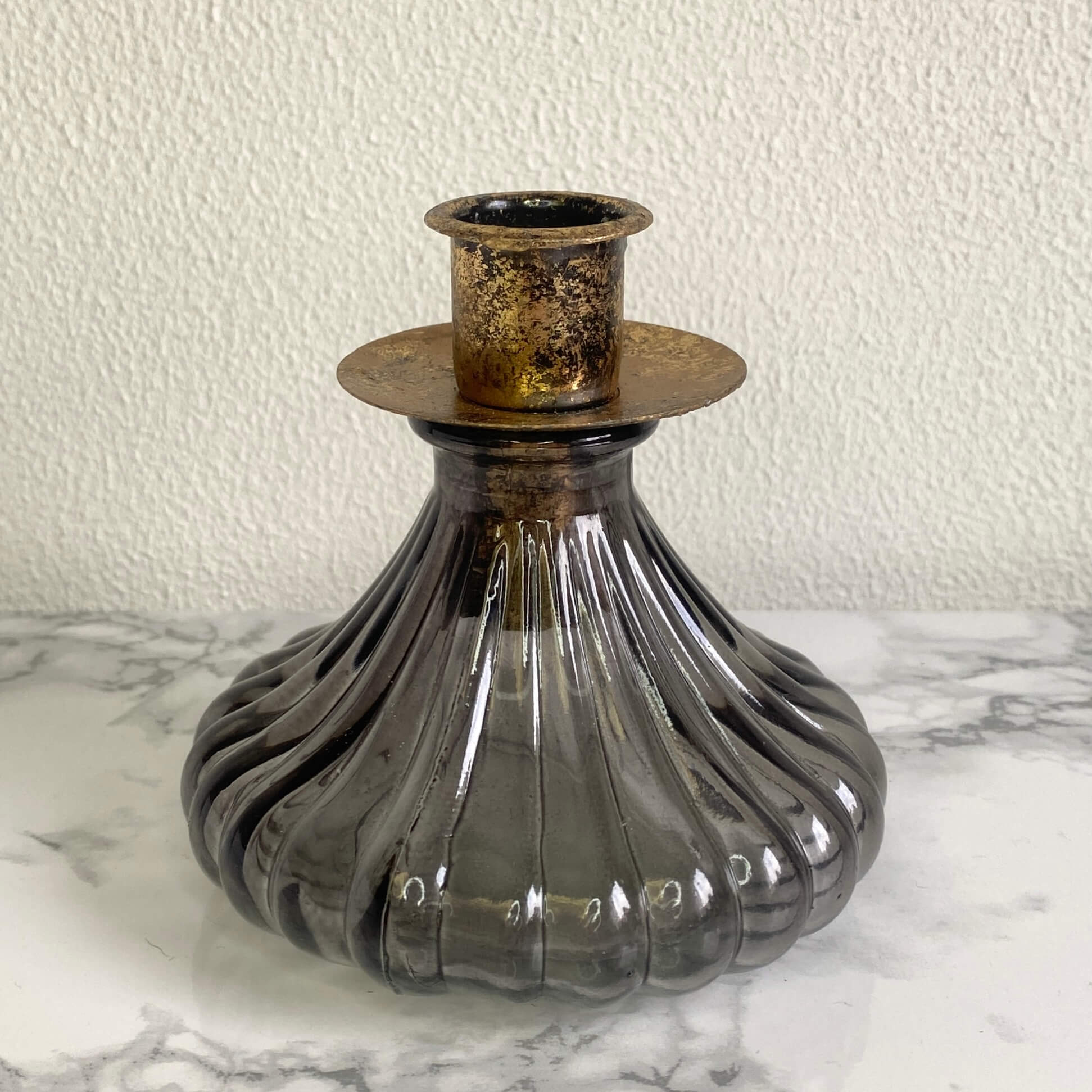 🌸 Mooie kaarsenhouder gemaakt van geribbeld grijs glas