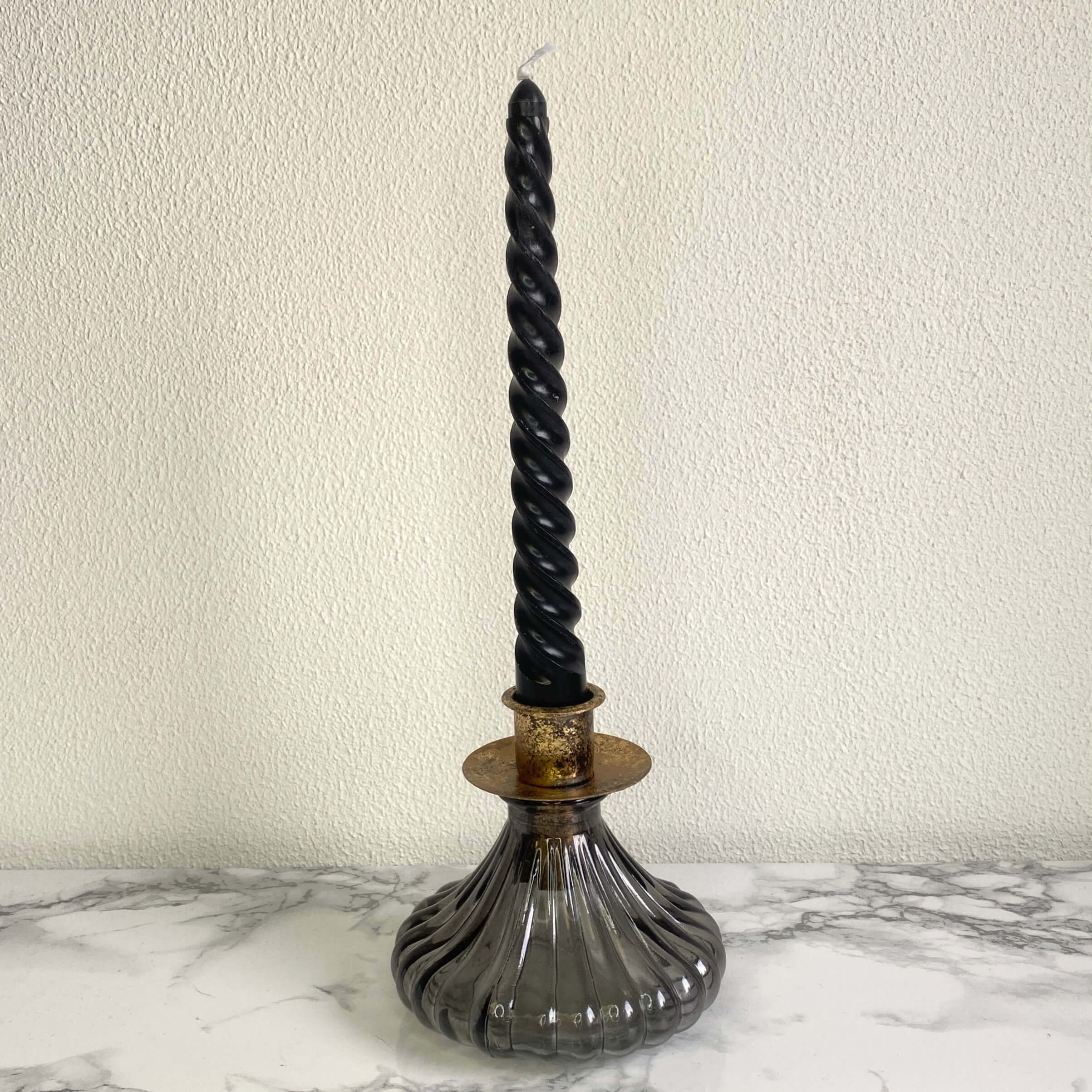 Hoe leuk is deze kaarsenhouder gemaakt van ribbel grijs glas met gouden stop om een kaars in te bevestigen. De kaarsenhouder wordt exclusief kaars geleverd!
