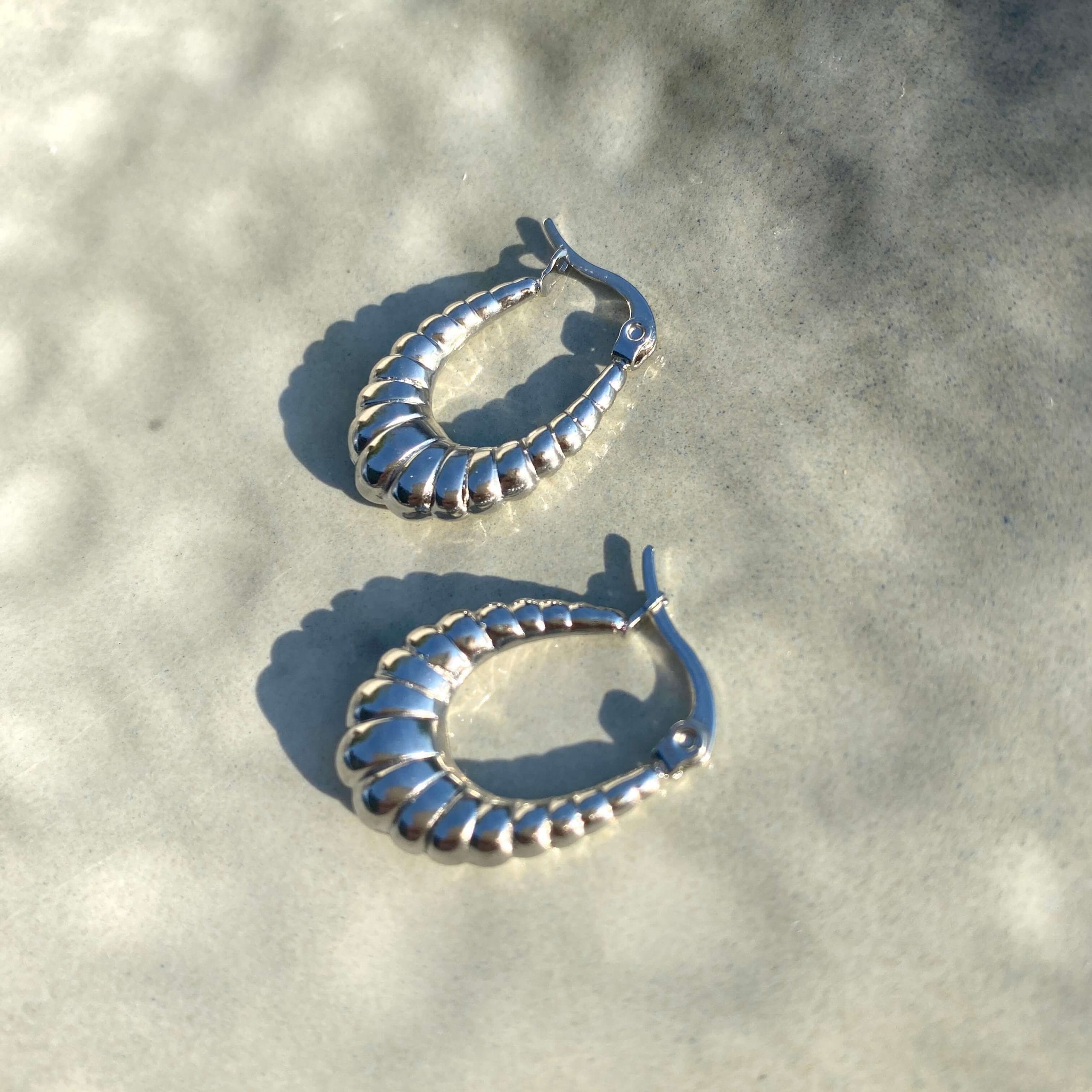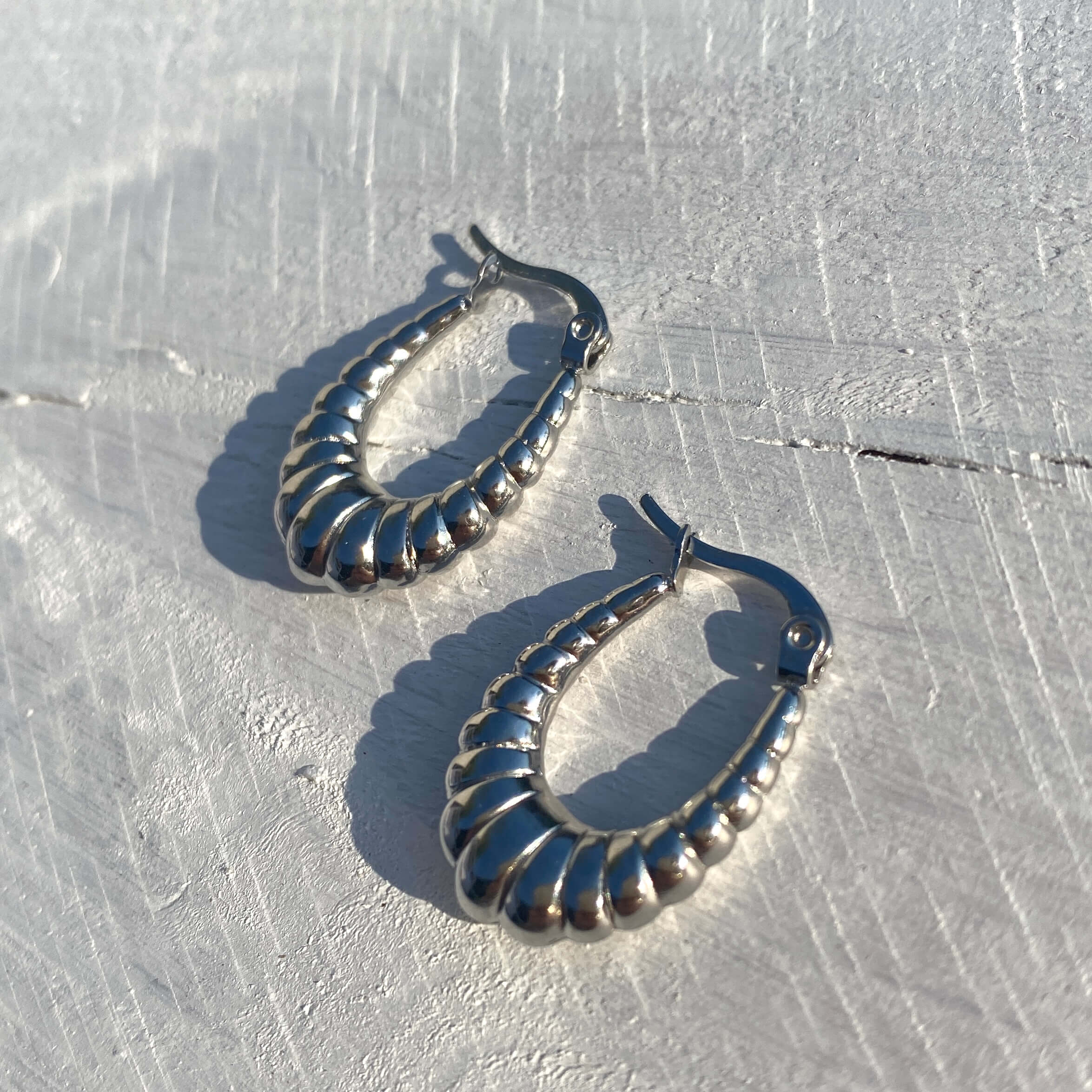 Oorbellen baguette zilver hebben een leuke gedraaide print die lijkt op een croissant. De oorbellen zijn erg trendy en populair. Door de gedraaide details krijgt de oorbel een klassieke uitstraling die zowel voor een feestelijke gelegeheid als dagelijks gedragen kan worden. De oorbellen zijn gemaakt van stainless steel waardoor de oorbellen van goede kwaliteit zijn en erg glanzen. Stainless steel sieraden kun je in principe het hele jaar door dragen, maar om zo lang mogelijk te kunnen genieten van de beste kwaliteit, wordt het afgeraden om te zwemmen en sporten met stainless steel sieraden om. De oorbel sluit perfect door middel van een handig kliksysteem. Zo kun jij supermakkelijk jouw oorbellen in- en uitdoen.