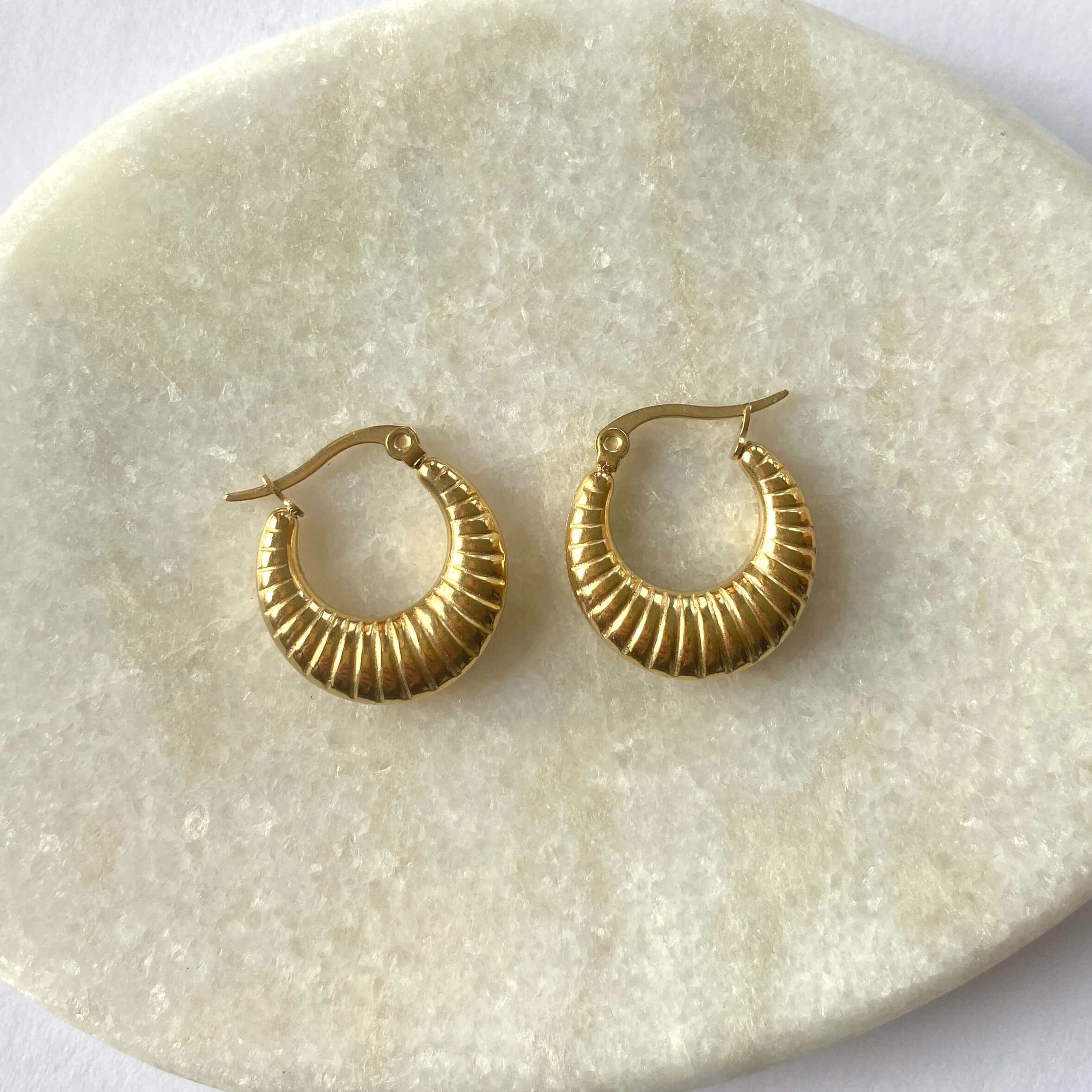 Hoe leuk is dit gouden paar oorbellen in een ronde vorm met ribbel print. De speelse oorbellen zijn uitstekend enkel alledaags te dragen maar kunnen ook superleuk gecombineerd worden met meerdere basic gouden oorbellen of leuk om met kleurrijke oorbellen te dragen. Daarnaast zijn deze oorbellen ook superleuk te combineren met kleurrijke accessoires voor een tof feestje! Naast deze gouden oorbellen, zijn de oorbellen ook verkrijgbaar in het zilver.