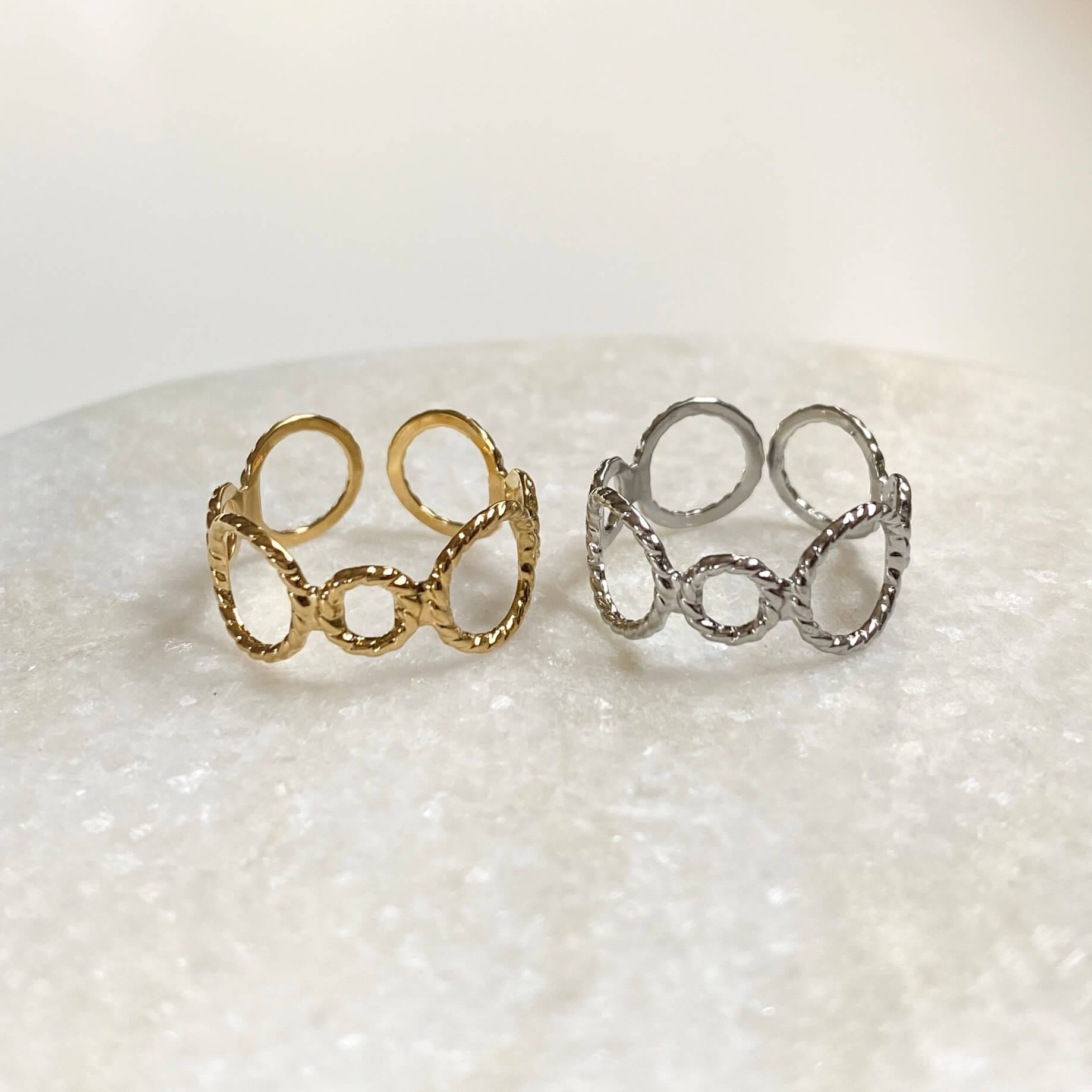 Wauw! Hoe leuk is deze ring open rondjes in de kleur goud van Livs and Gifts! De ring is een echte musthave die niet mag ontbreken in jouw sieraden stash! Zo leuk om deze ring te combineren met meerdere ringen en zo een leuke ring party te creëren. Stijltip: combineer deze ring met meerdere sieraden met rondjes voor een perfecte sieraden look. De ring is ook verkrijgbaar in de kleur zilver. Wij zijn helemaal verliefd op deze prachtige ring.