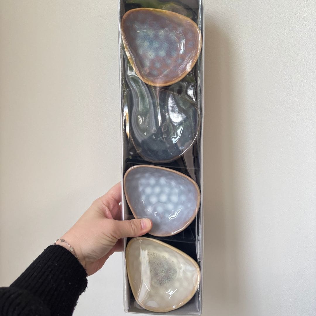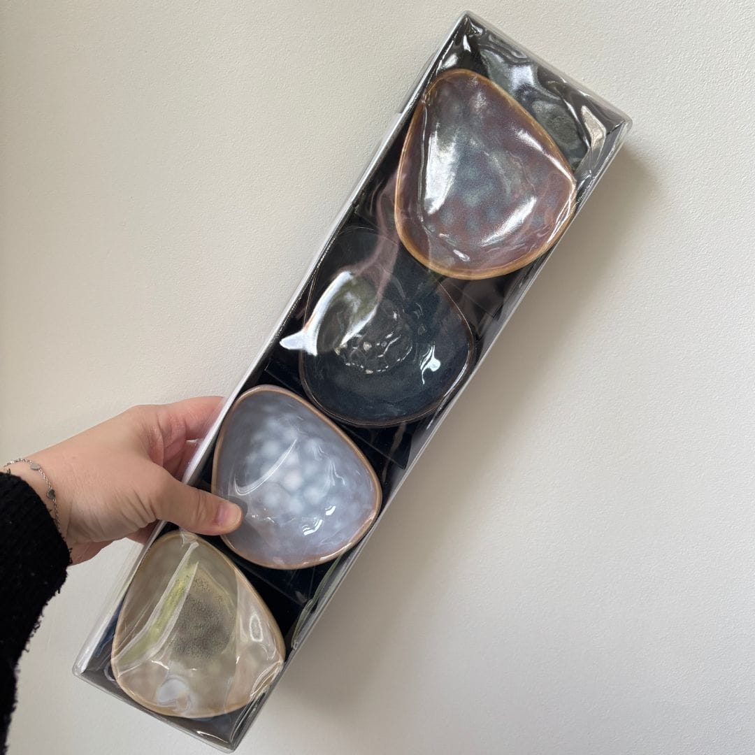 Wauw! Hoe leuk zijn deze vier tapasschaaltjes van Livs and Gifts! Deze schaaltjes zijn perfect om jouw borrelhapjes en amuses in te serveren. De schaaltjes worden geleverd per vier stuks in de kleuren: beige, lichtblauw, donkerblauw en paars.