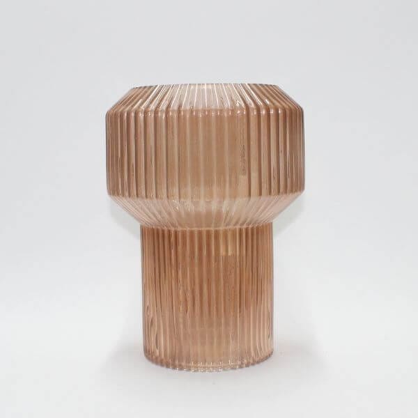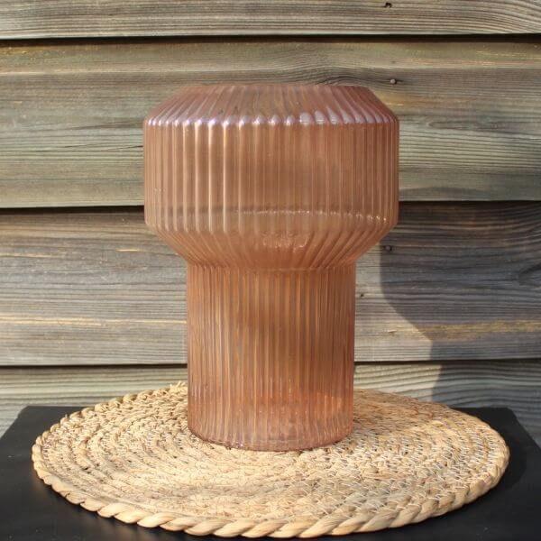 Mooie roze vaas van glas. De vaas heeft een ribbel structuur en heeft de afmetingen: 16×23 cm.